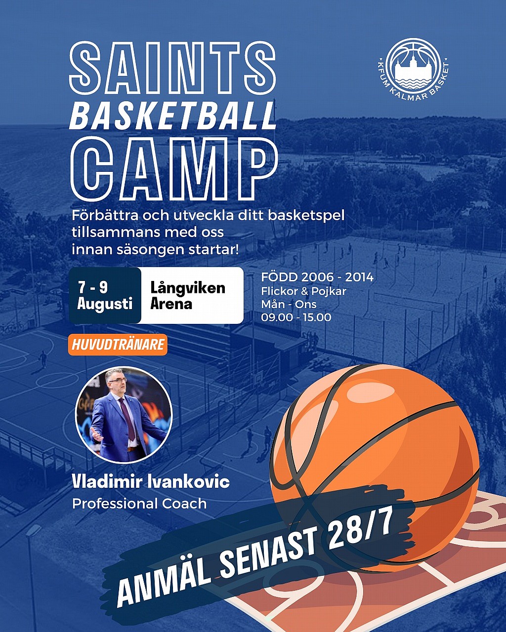 KFUM Kalmar Basket är stolta över att arrangera "Saints Camp" i augusti 2023. Campet är öppet för flickor och pojkar födda mellan 2006 och 2014 och kommer att äga rum den 7–9 augusti, måndag till onsdag, mellan 09:00-15:00 på Långviken Arena.