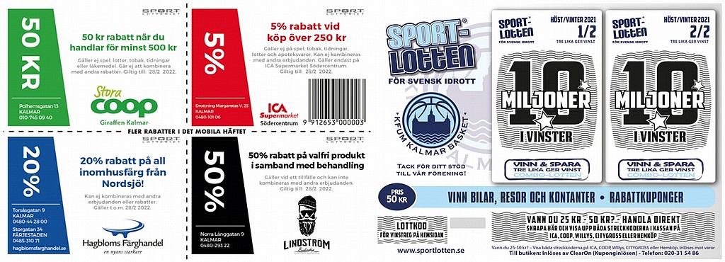 Fysiska rabattkuponger = Pengarna tillbaka direkt! – På baksidan finns fyra fantastiska rabatterbjudanden från några partners. På en enda kupong har man fått tillbaka pengarna på lotten.
